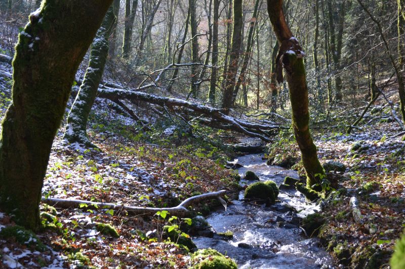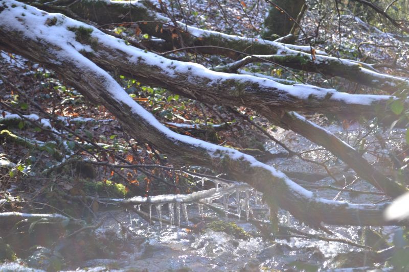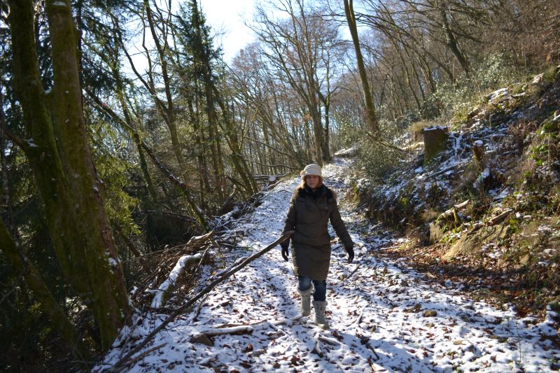 Het was een leuke wandeling alleen ging het pad toch wel berg af, en was het pad gegeven ogenblik verspert door bomen die ze omgezaagd hadden. Maar dat liet ons niet stoppen,aangezien het pad niet verder ging hadden we bedacht om het pad te verlaten en het stroompje te gaan volgen.